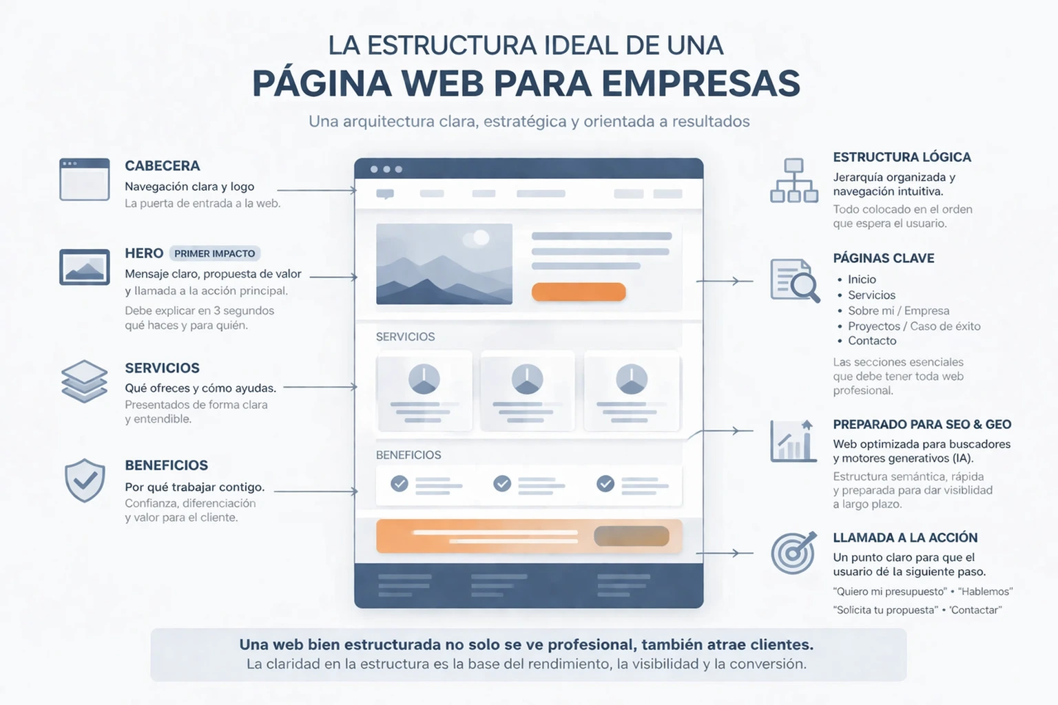 Antes de entrar en secciones concretas, conviene dejar clara una idea: la estructura no es un detalle secundario. Es una de las bases del rendimiento real de la web.